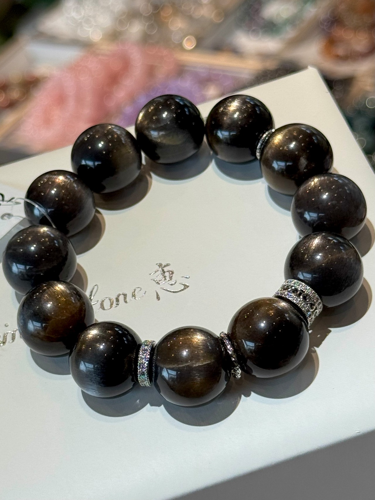 漆黒の艶ブラックにメタリックなシラーとサンの色気を感じるブレスです♡
