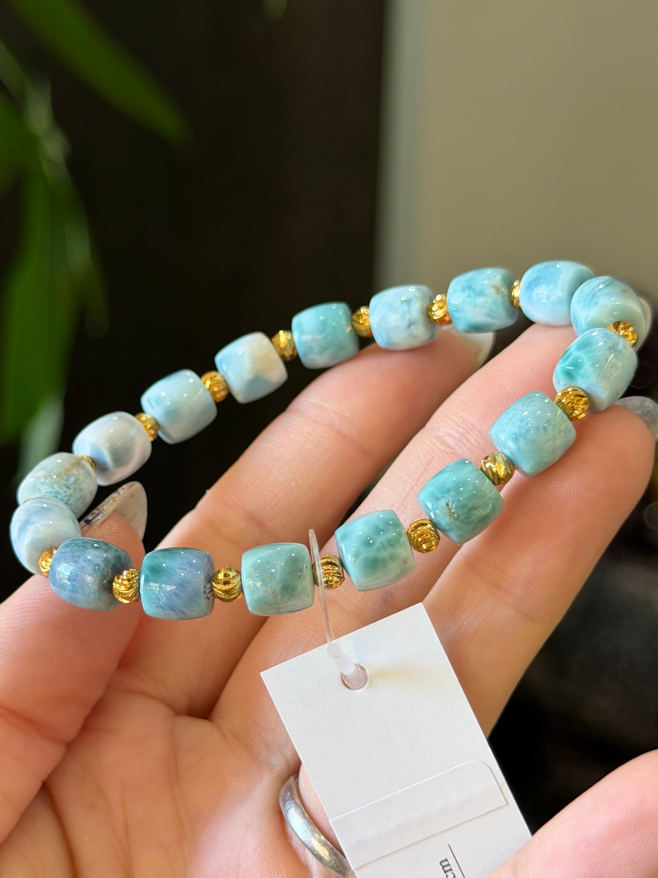 ひんやりパープルカラー〜あたたかみのあるグリーンが美しいラリマーのブレスです♡