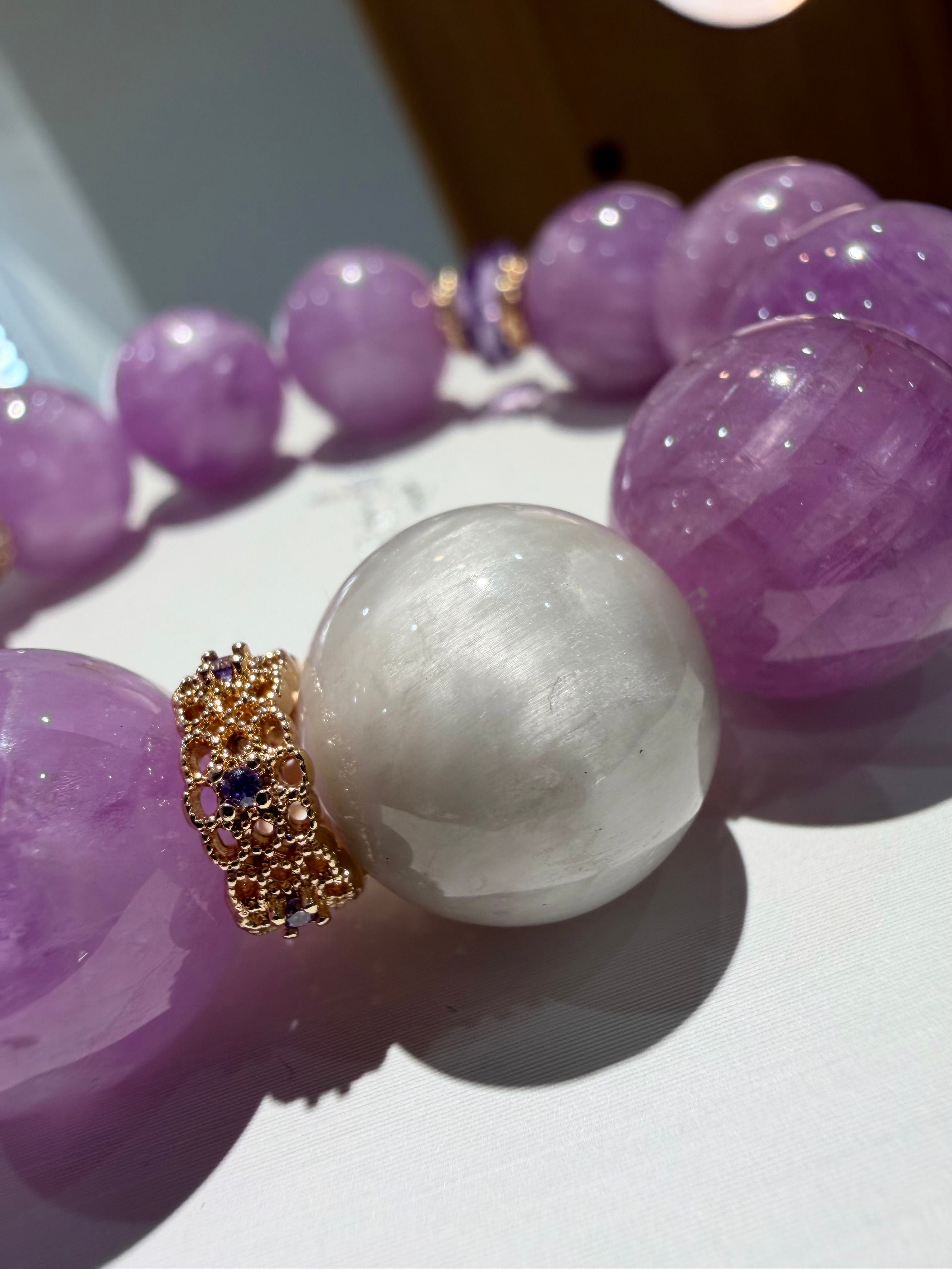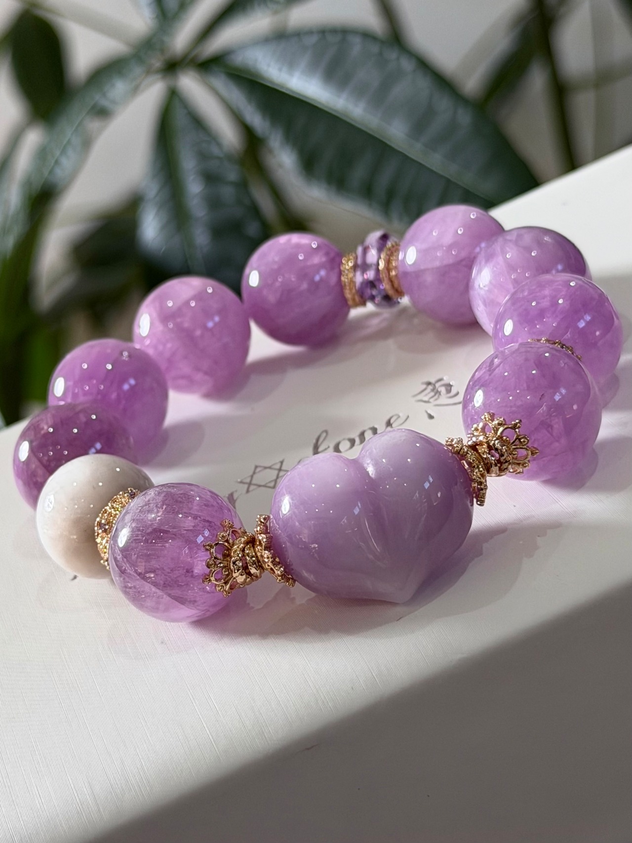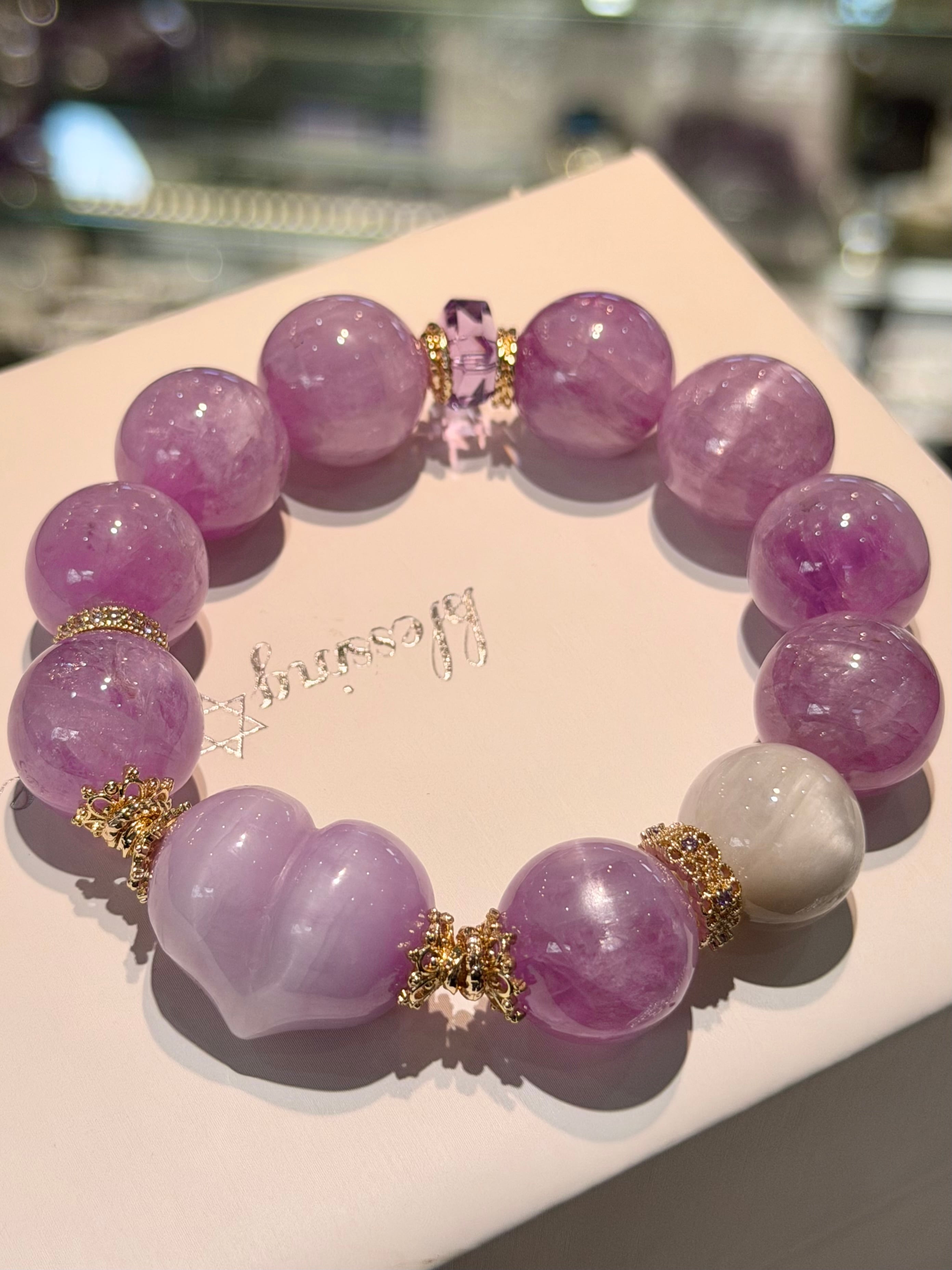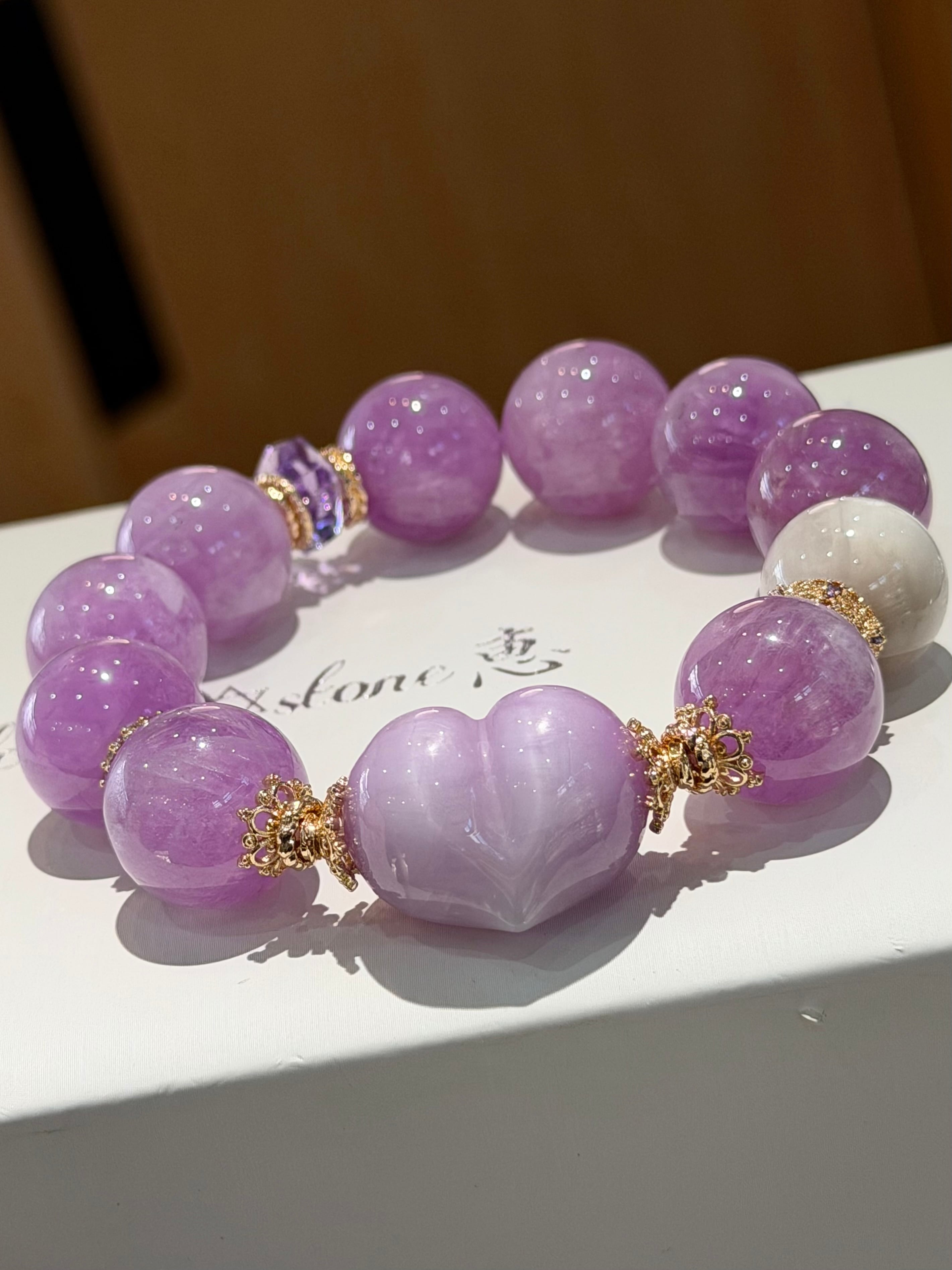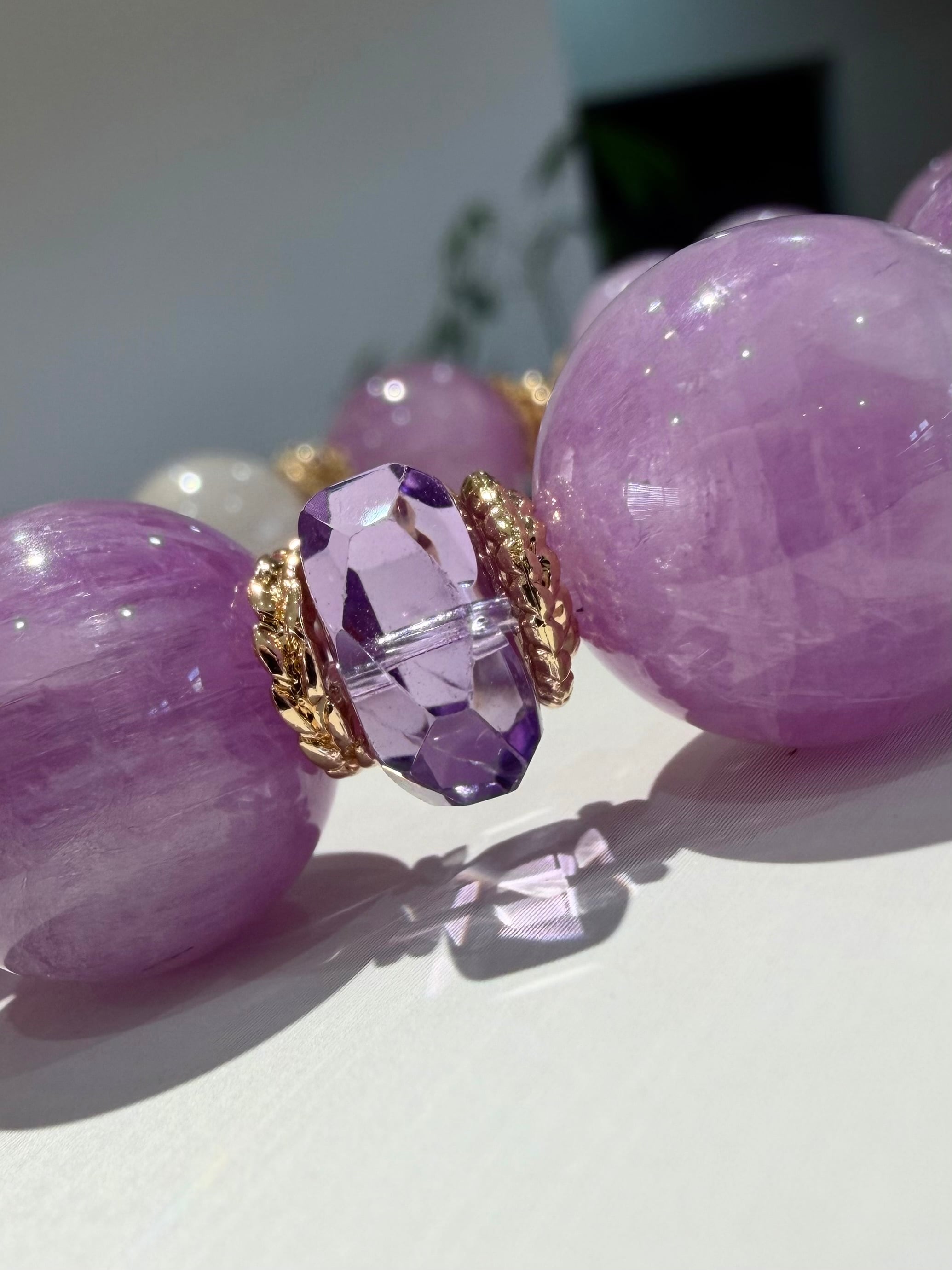 疲れた心を愛と癒しで満たしてくれるようなクンツァイトとホワイトサゲニティックインクォーツ、クリアなキラキラカットアメジストの美しく可愛いブレスです♡