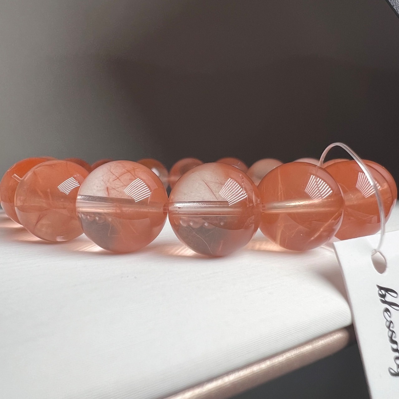 ちゅるちゅるクォーツからニュアンス可愛い♡オレンジアンフィボールのブレスです♡