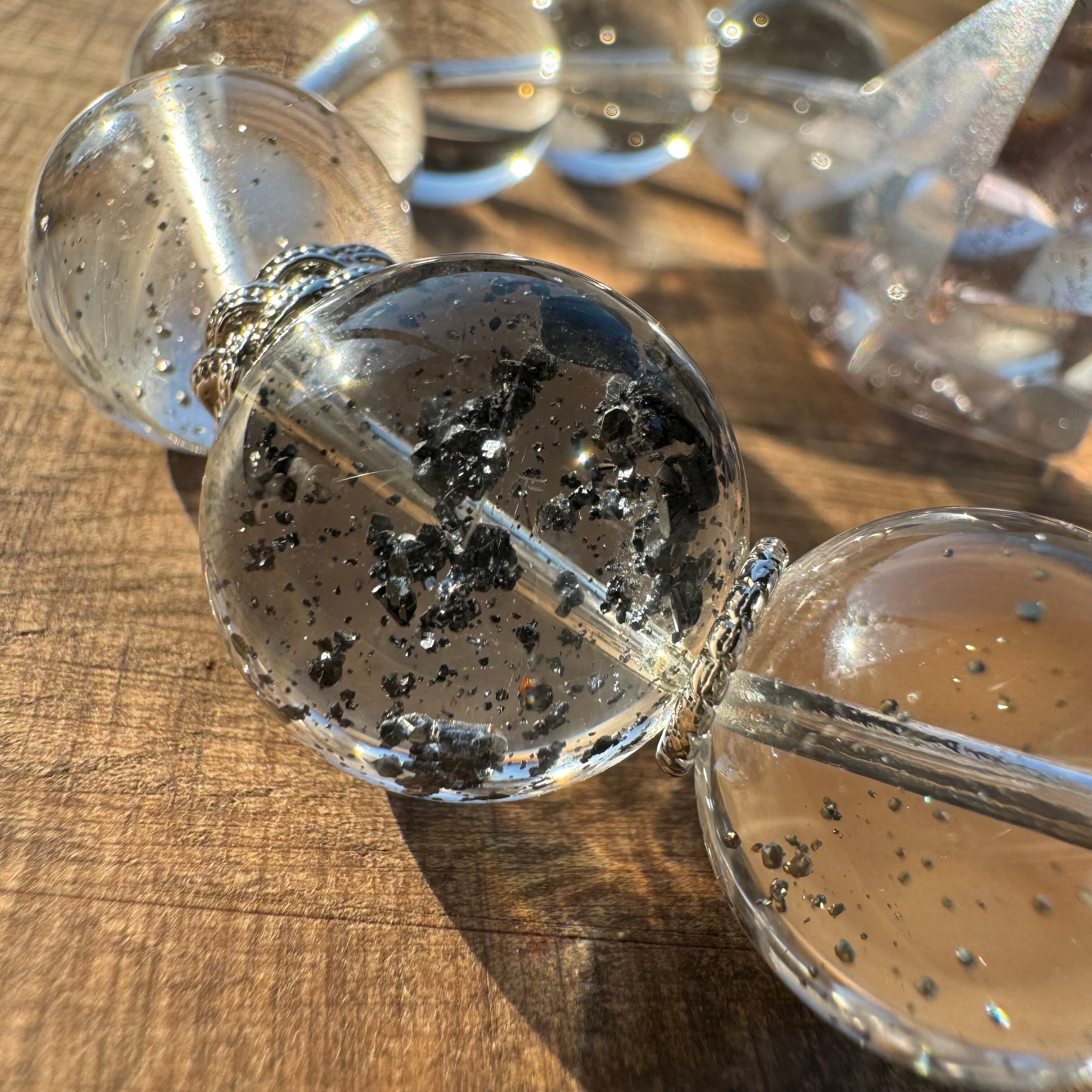 パイライトインクォーツとヘマタイトインクォーツがキラキラなデザインブレスです♡