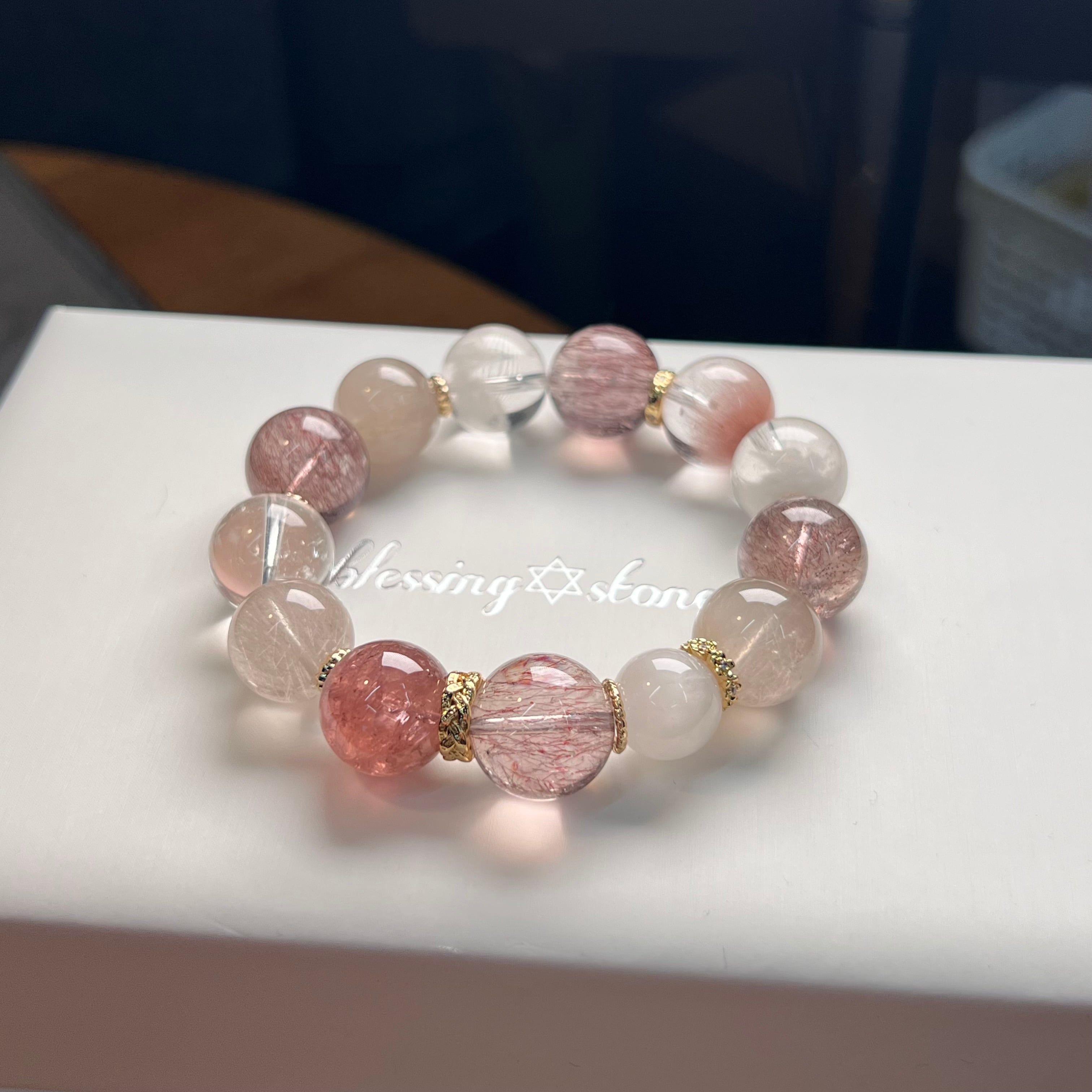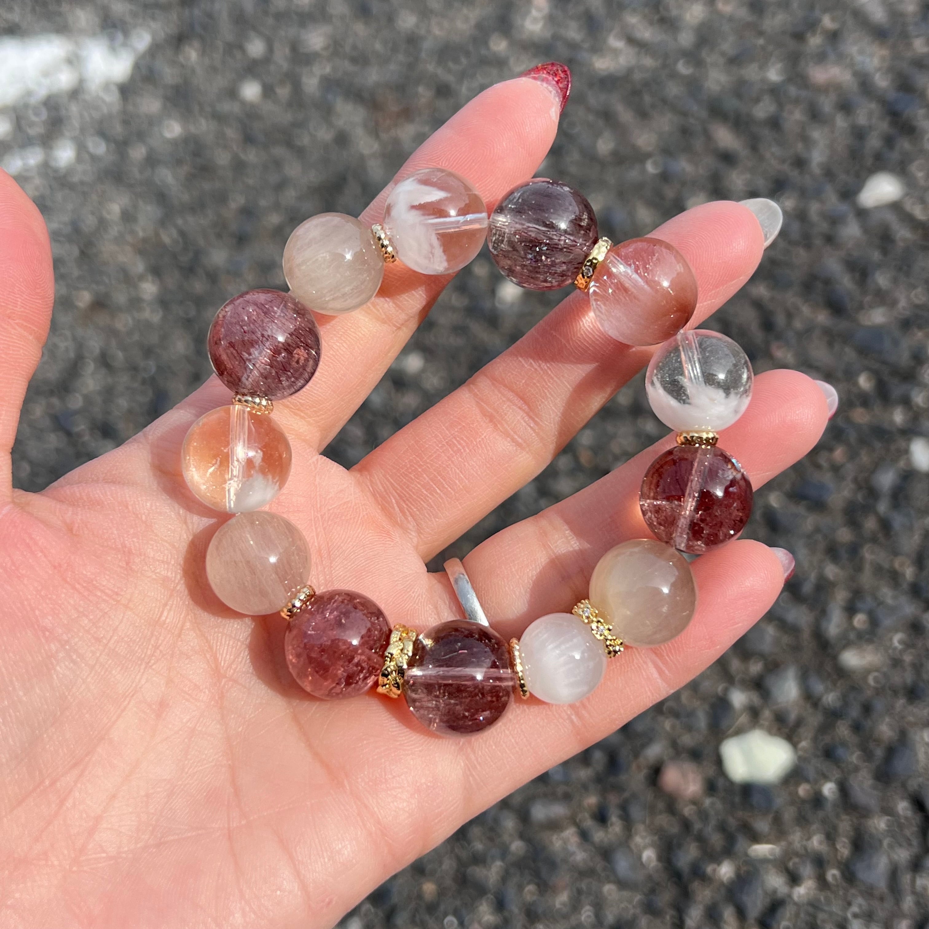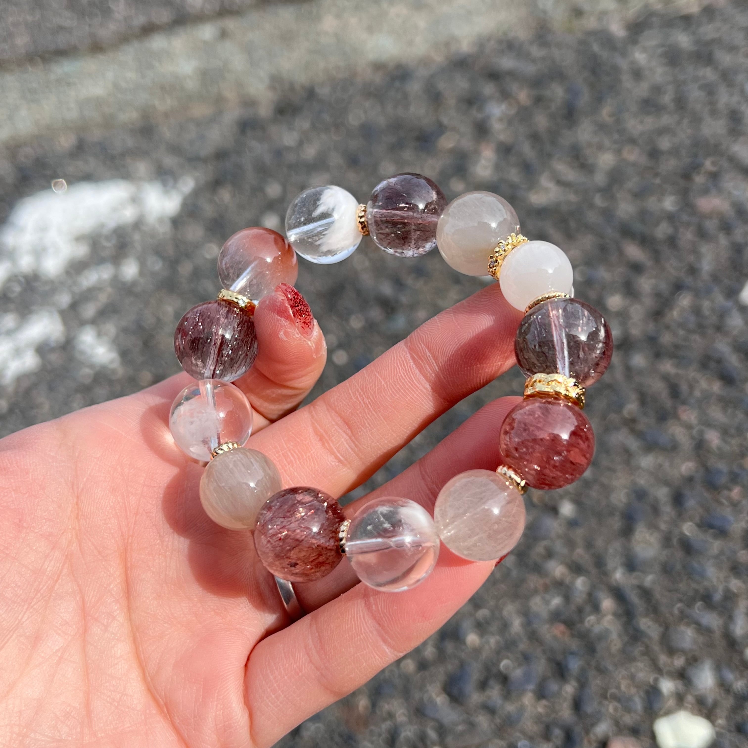 高品質スモーキースーパーセブンにピンクトルマリン、サゲニティックインクォーツ、コットンインクリュージョンクォーツ、キャッツアイホワイトサゲニティックインクォーツ、をおいれしております♡