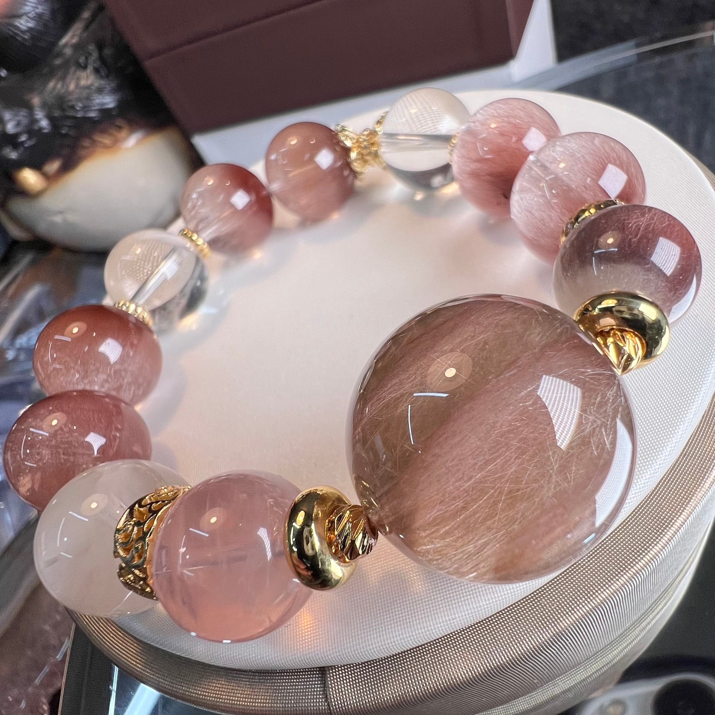 甘い香りがしそうな、サゲニティックインクォーツとコットンインクリュージョンクォーツのブレスです♡