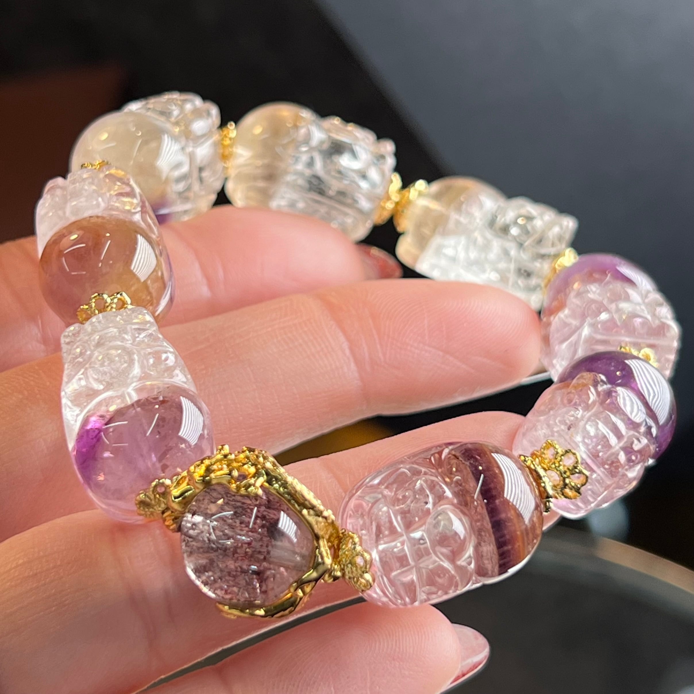 個性溢れるオーラライト23の貔貅ちゃんとラメラメセブンを抱えた龍パーツがかわいいブレスです♡