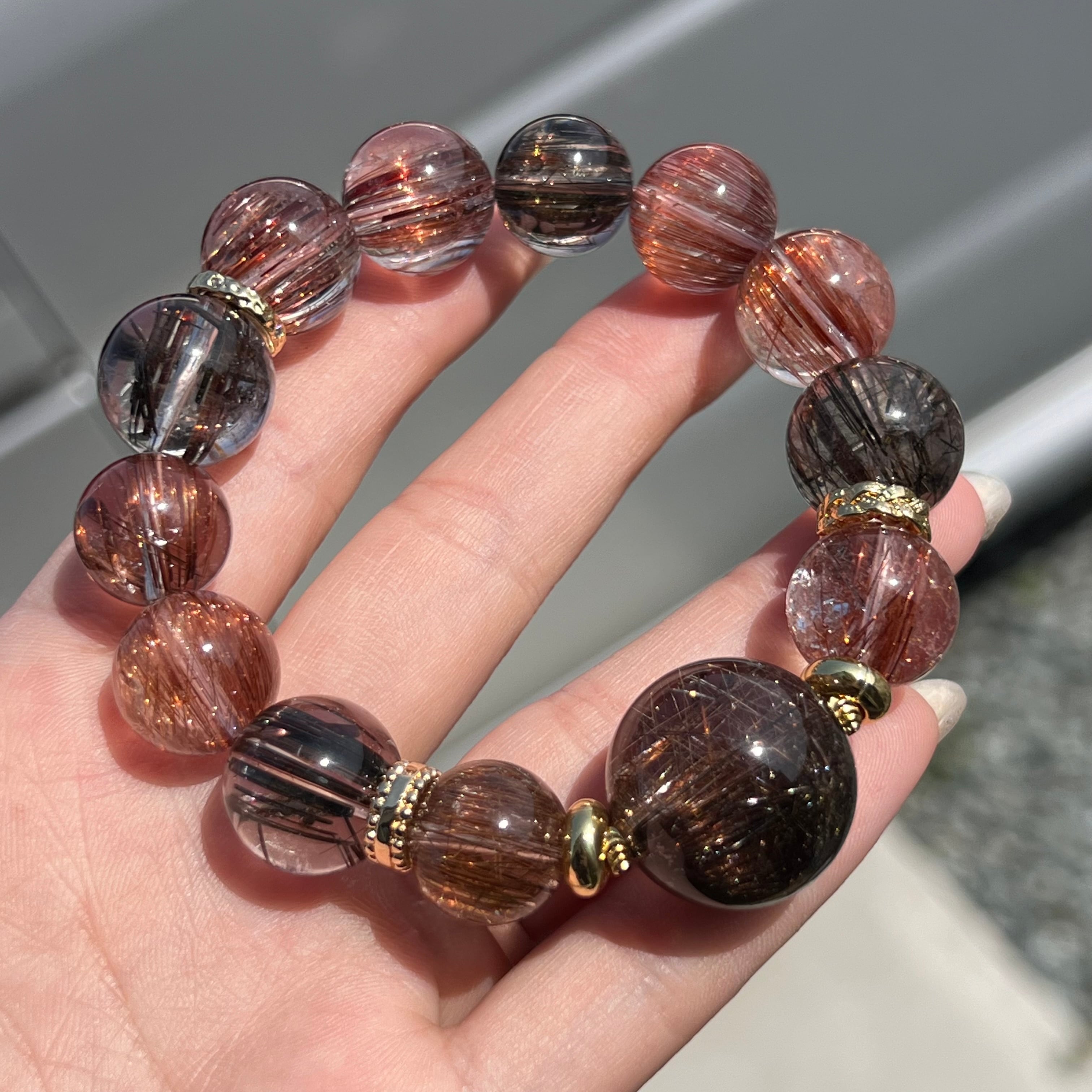 情熱colorルチル、イケメン太針ルチル、ダークモカルチル、ブラウンルチルがそれぞれ輝くルチル三昧ブレスです♡