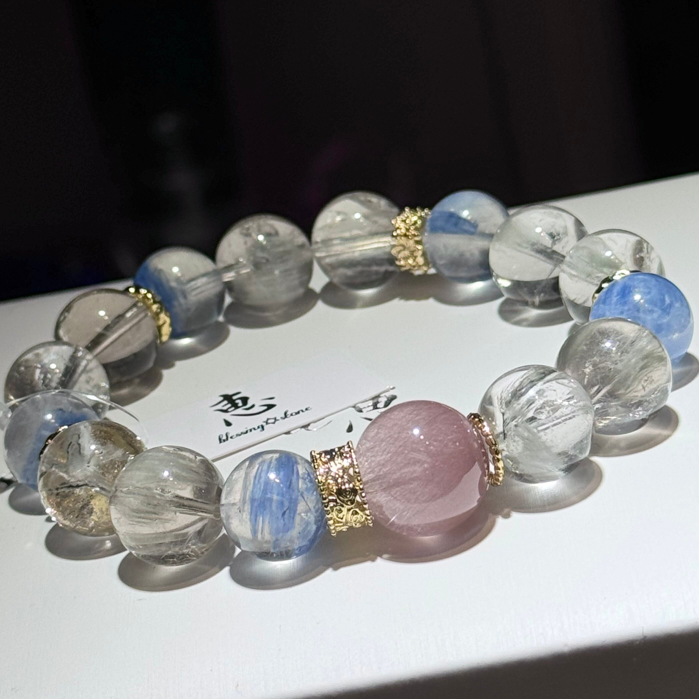 透け感のあるサゲニティックインクォーツ、カイヤナイトインクォーツ、シルバーサゲニティックインクォーツが涼しげなブレスです♡