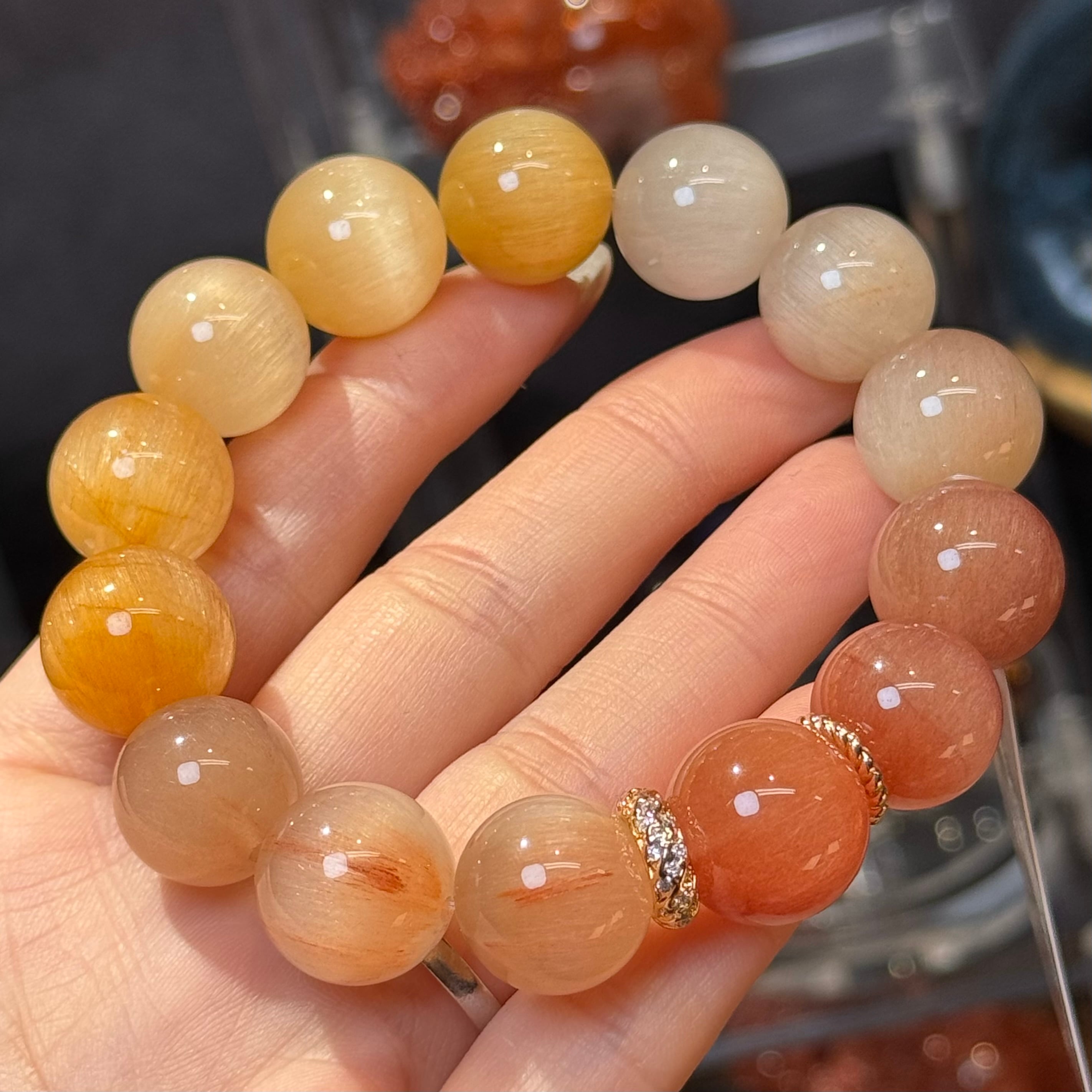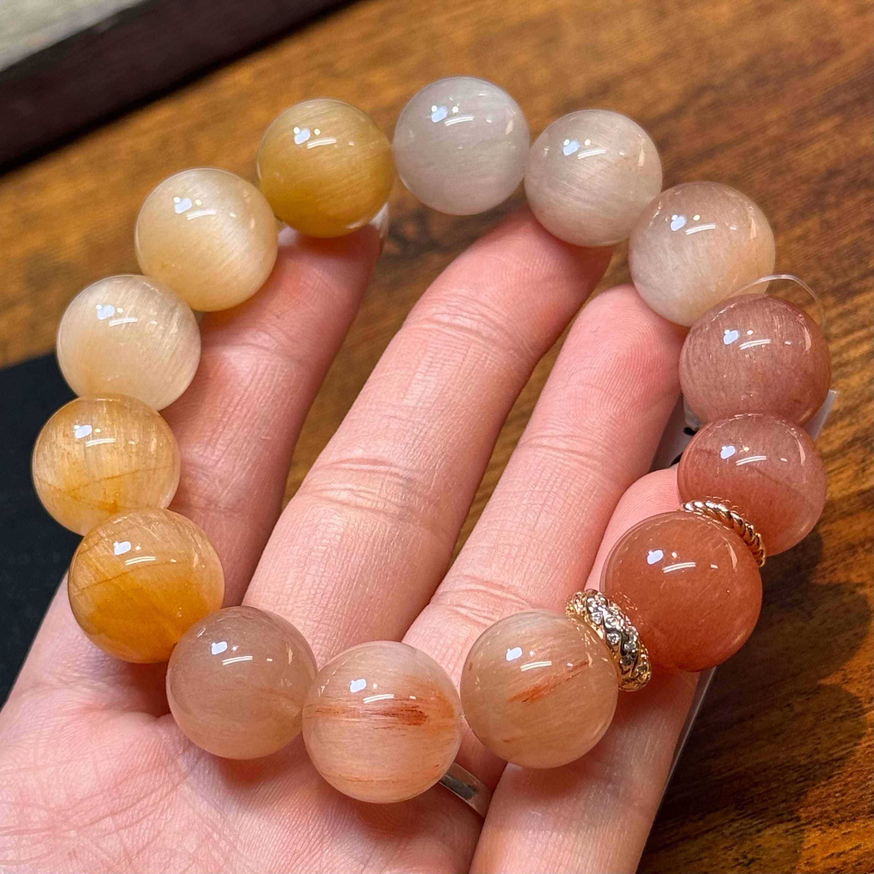 オレンジ〜ピンク系のお色味に美しいキャッツが入ってジューシーさを増したサゲニティックインクォーツのブレスです♡